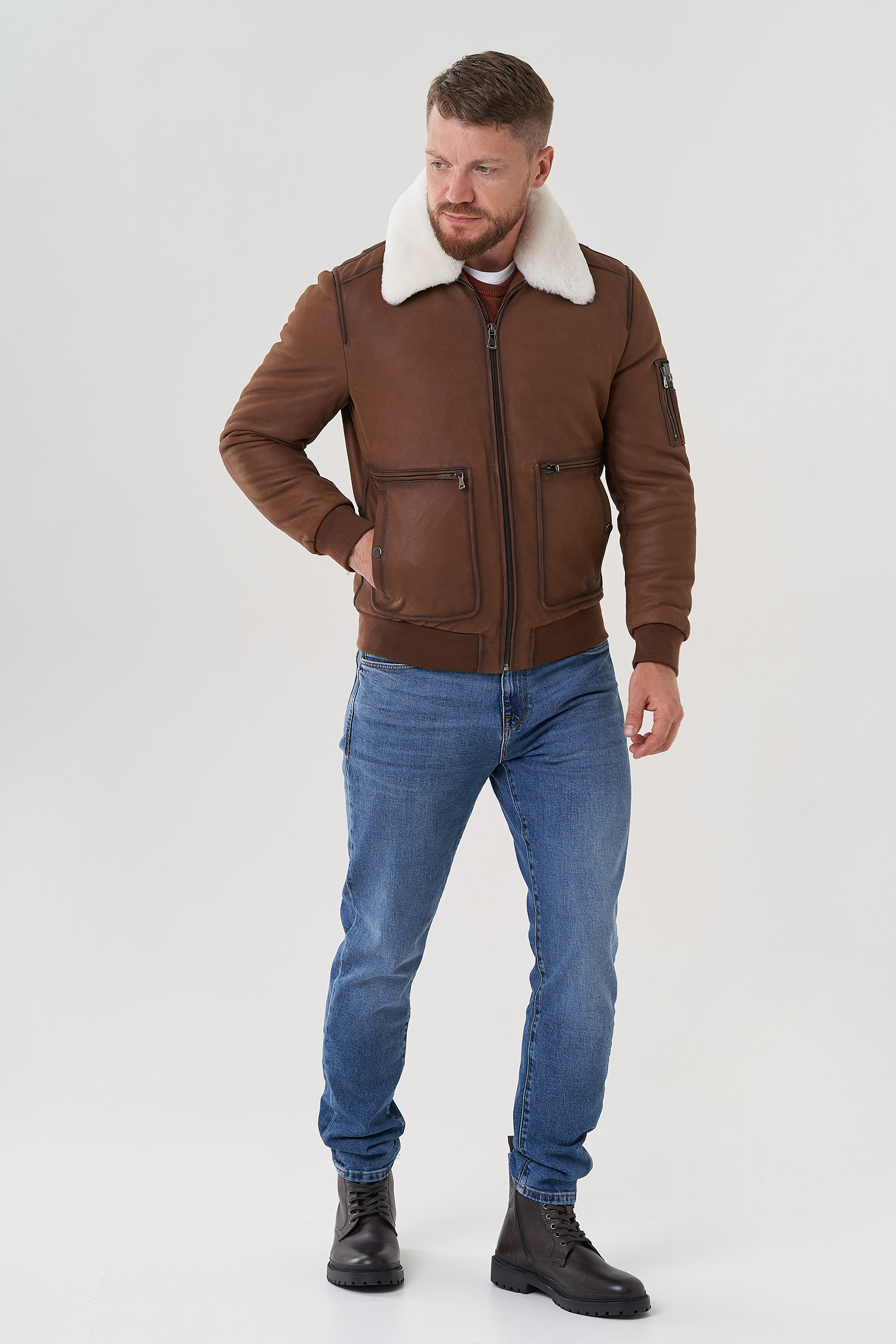 Тип ворота - отложной, отделка овчина белый