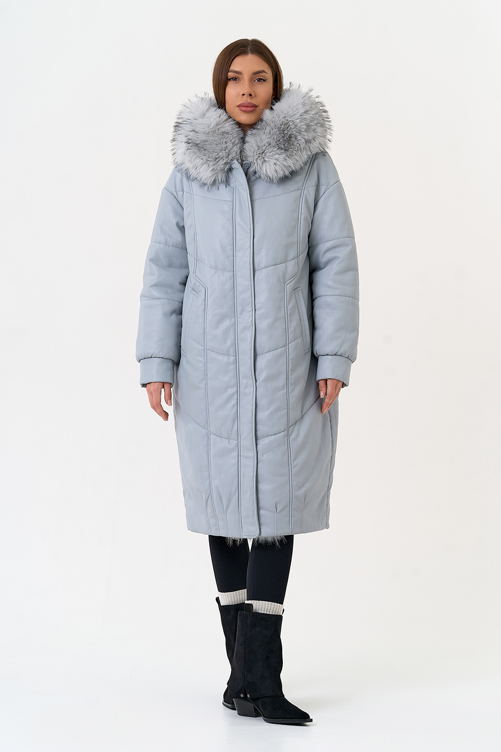 Отделка воротника - эко мех под мех енота, цвет голубой